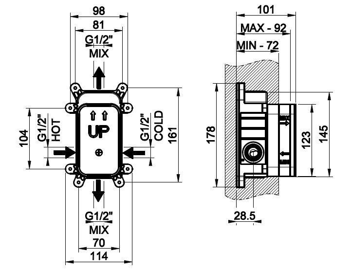 Скрытая часть настенного однорычажного смесителя Gessi 44673.031