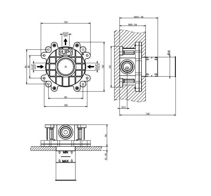 Скрытая часть однорычажного смесителя на одну позицию Gessi 54055.239