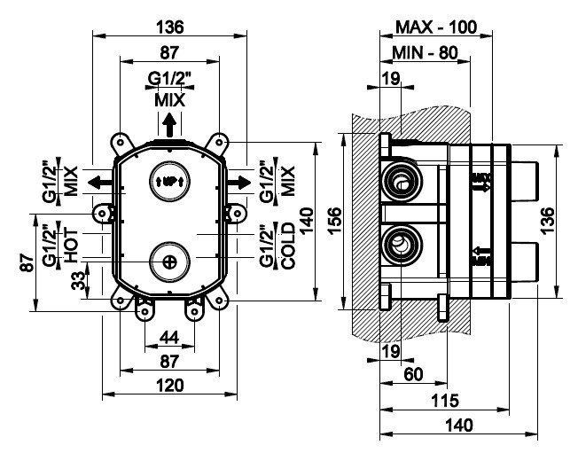 Скрытая часть термостатического смесителя для ванны и душа Gessi Universale 09269.031