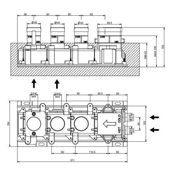 Скрытая часть термостатического смесителя Gessi HI-FI Comfort 63011.031