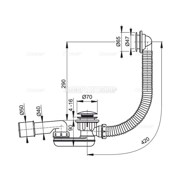 Слив-перелив для глубокого душевого поддона AlcaPlast клик-клак хром A506KM купить