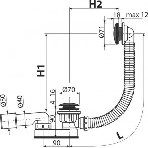Слив-перелив для ванны AlcaPlast 120см клик-клак черный A507BLACK-120