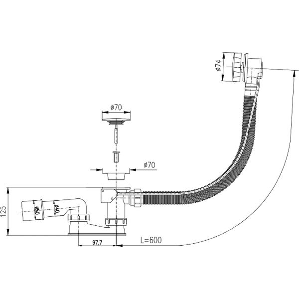 Слив-перелив Rav Slezak MD0588PSM полуавтомат БронзаMD0588PSM Сифон для ванны металл/пластик 600 мм., ЦВЕТ БРОНЗА, сливной сифон ПЛАСТИКОВЫЙ
