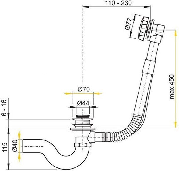 Полуавтоматический слив (тросик) управляется поворотом крышки перелива, соединенной тросиком с пробкой слива