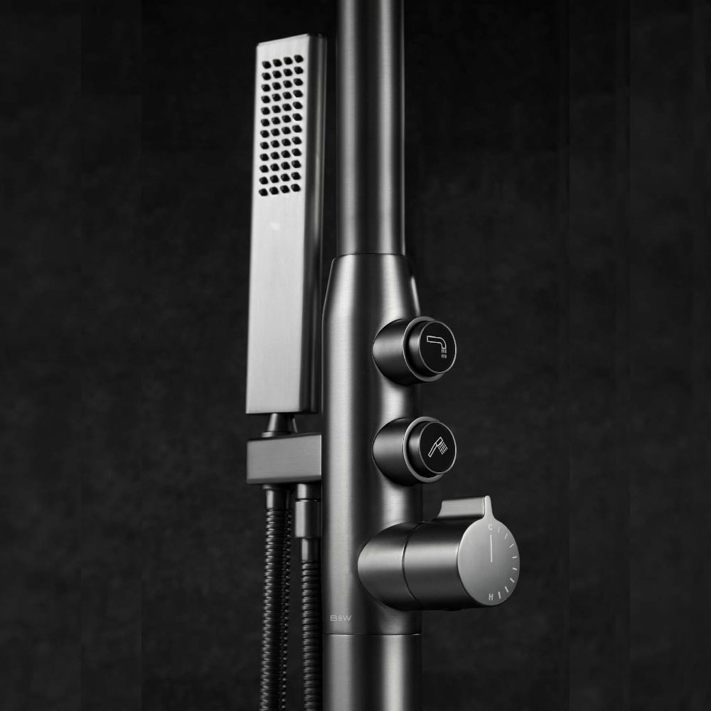 Смеситель Black & White Universe 7752GM для ванны и душаИзысканный смеситель для ванной с кнопочным управлением и режимом имитации «Водопад», который позволит Вам каждый день испытывать абсолютно иные ощущения от принятия банных процедур и позволит с головой окунуться в ощущения единения с природой.Использование нестандартных механизмов и материалов — это то, что является отличительной особенностью продукции B&W и способом подарить каждому клиенту уникальные ощущения.