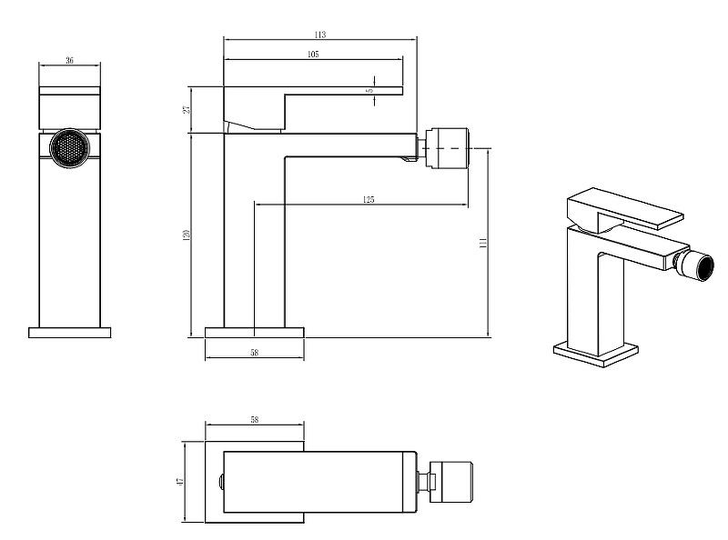 Смеситель для биде Boheme Qubic 476-B.Характеристики:Цвет: черный матовый.