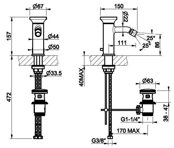 Смеситель укомплектован донным клапаном и подходит для установки с большинством стандартных биде. Точное исполнение всех деталей и фирменное качество Gessi обеспечивают стабильную работу, а визуальная выразительность делает изделие неотъемлемой частью цельного интерьерного образа.