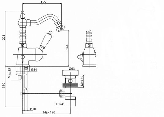 Оснащение: донный клапан, аэратор