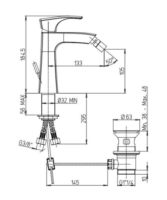 - Аэратор Neoperl под наклоном (струя отводится дальше от края биде) наполняет воду кислородом, увеличивает напор воды, вследствие чего становится возможной существенная экономия воды. Сеточка легко очищается пальцем.