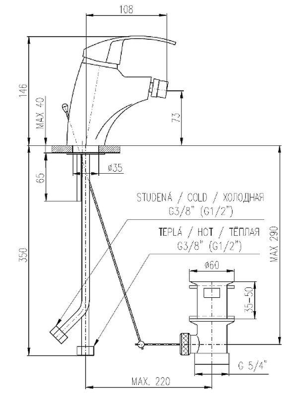 Смеситель для биде Rav Slezak Mississippi MS045.5K хром