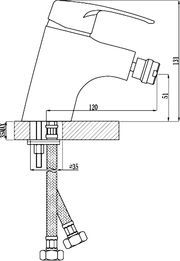 Смеситель Rossinka D40-51 для биде. Пластиковый поворотный аэратор, керамический картридж 40 мм, гибкая подводка 30 см – 2 шт. Присоединительная группа для горизонтального крепления
