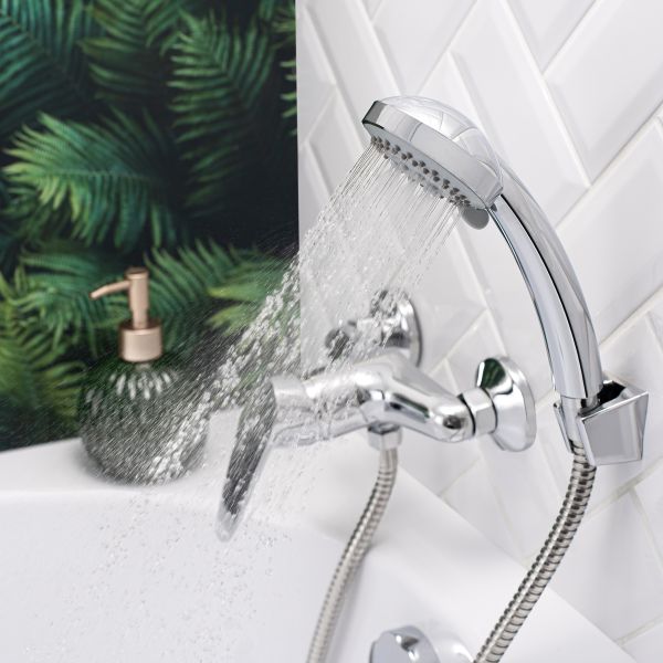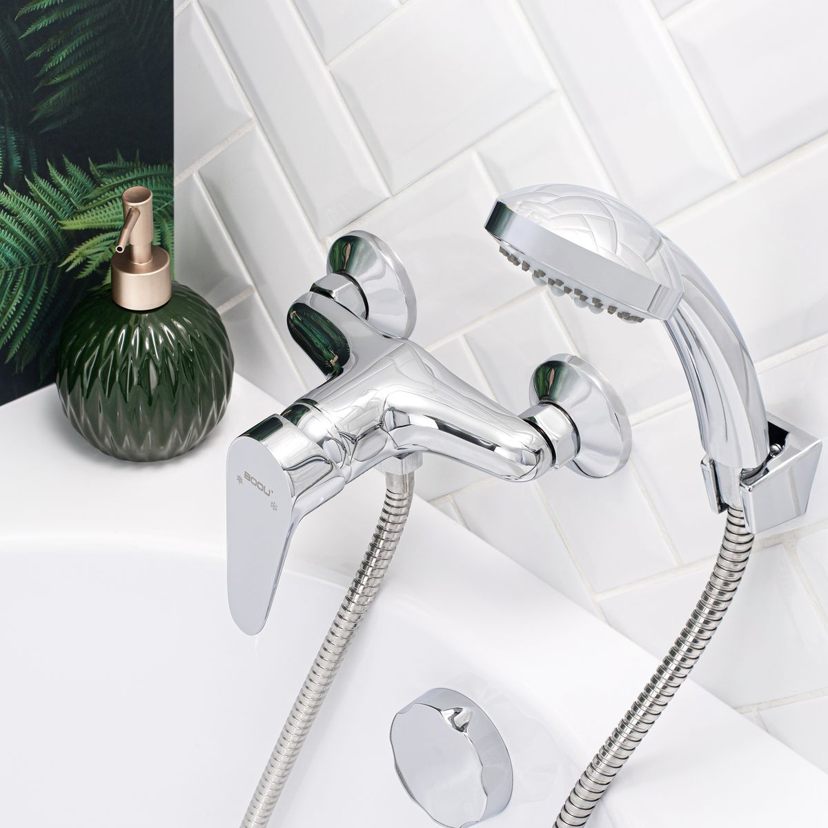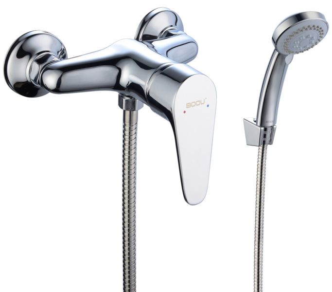 Душевой смеситель ТМ BOOU прост и надежен в использовании. Модель прекрасно впи-шется в интерьер современной ванной комнаты.