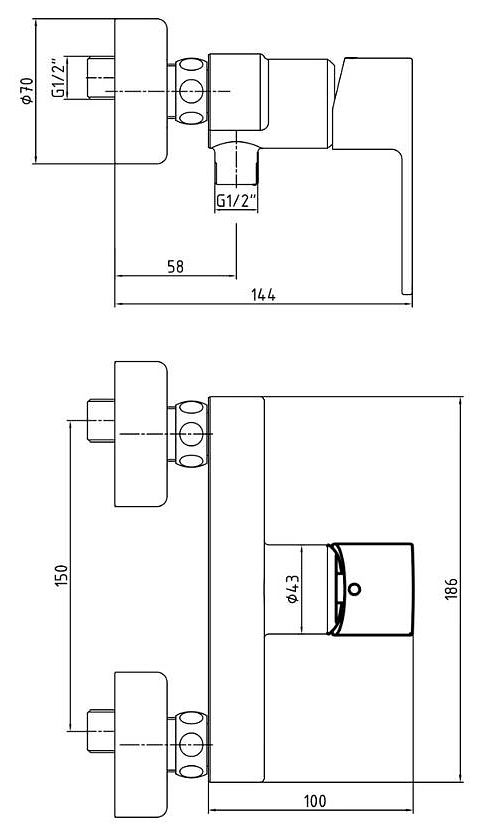 Смеситель для душа E.C.A. Nita 102154026EX хром