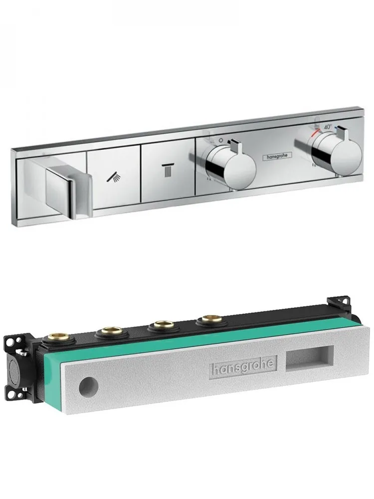 При использовании смесителей с термостатами RainSelect вы можете управлять процессом принятия душа с помощью больших плоских кнопок Select. Этот тонкий центр управления аккуратно встраивается в стену. Переход на новый уровень — в соответствии с высочайшими стандартами дизайна. Активное регулирование расхода воды — количество воды можно устанавливать с помощью круглого регулятора.