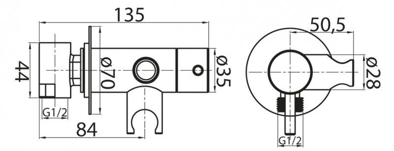 Смеситель для душа и гигиенического душа со штуцером с держателем, хром Cezares CZR-DA1-01