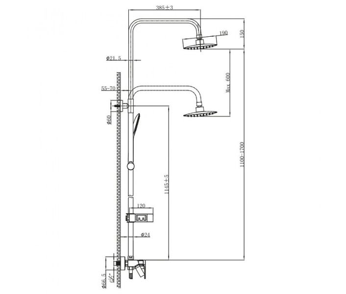 Ручной душ с 1 типом струи и регулируемым по высоте креплением.