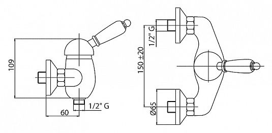 Смеситель для душа однорычажный, бронза Cezares ELITE-DM-02-Bi