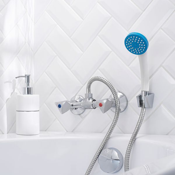 Двуручковый смеситель для душа из данной серии обладает не отполированным хромированным корпусом, удобен и практичен в использовании.