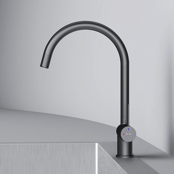Встречайте долгожданное пополнение нашумевшей коллекции Func — кухонные смесители с оригинальными «фишками», характерными для всей коллекции. Дизайн, характерный только для премиум-сегмента, благодаря собственным дизайнерам бренда теперь представлен и в более доступной ценовой категории. Размер (Ш/Г/В): 105x262x380 мм. Материал - нержавеющая сталь, цинк, латунь. Цвет - черный. Тип управления - однозахватный. Излив - поворотный.