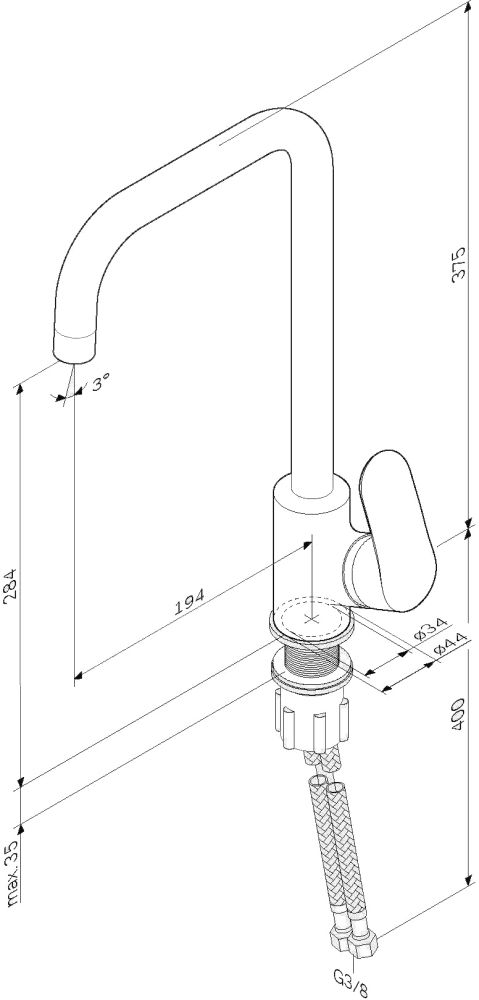 Высота смесителя:37.5