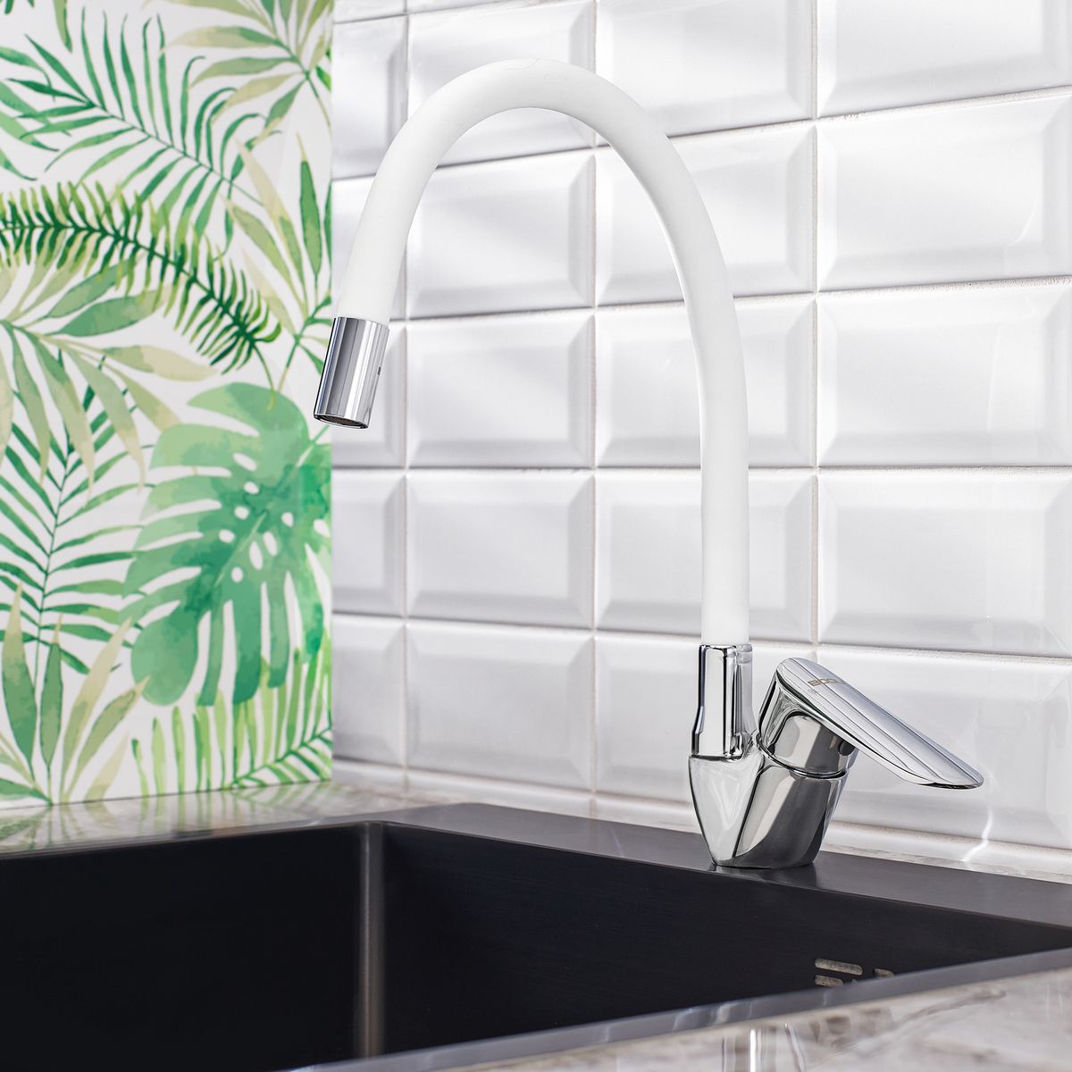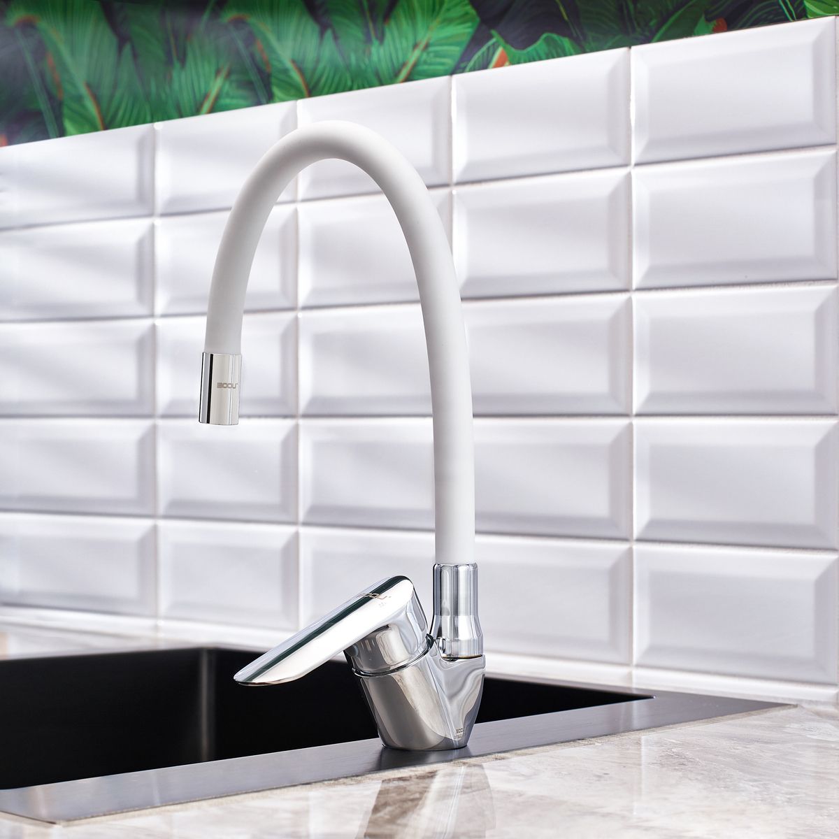 Смеситель для кухни BOOU B8274-10F-E306A хром/белый