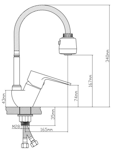 В комплекте мы предоставляем монтажный ключ для самостоятельной установки, салфетку из микрофибры для правильного ухода и подводку 60 см. В изготовлении подводки используется нержавейка, что в условиях влажности обеспечивает устойчивость к коррозии.