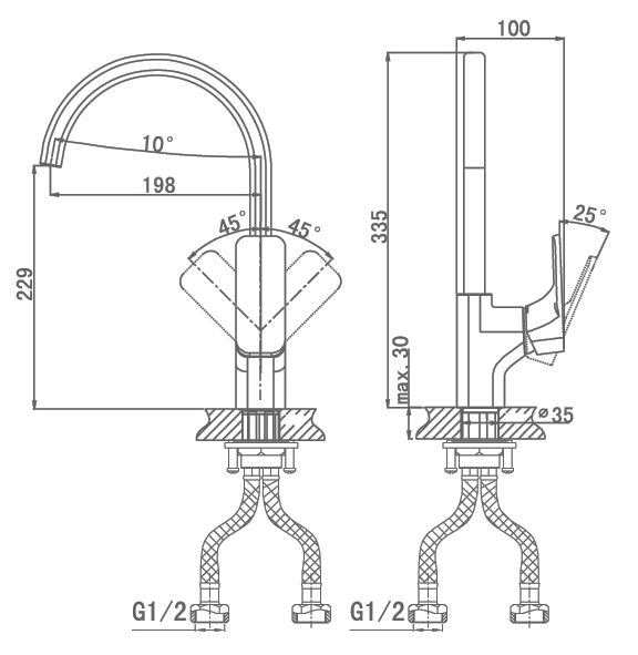 Высота смесителя:33.5