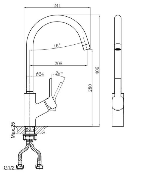 - Гибкая подводка 40 см идёт в комплекте для быстрой установки.