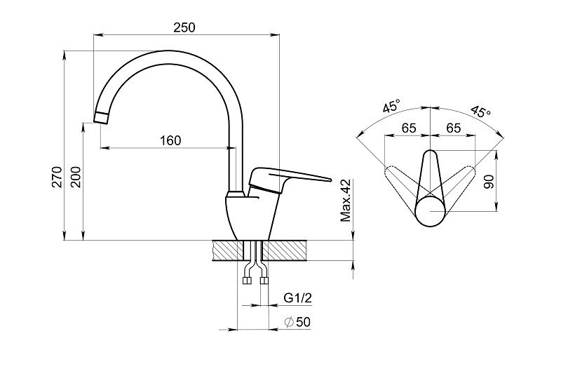 Смеситель для кухни Granula 1024, ТУРМАЛИН Турмалин