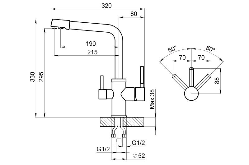 • Высота смесителя: