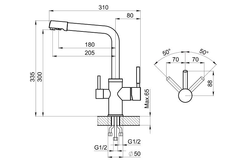 Высота смесителя:33.5