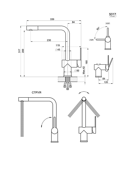 Смеситель для кухни Granula 5017, НЕРЖ нерж