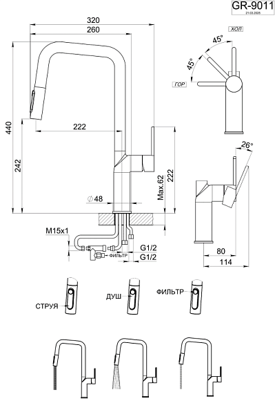 Смеситель для кухни Granula 9011, НЕРЖ Нерж