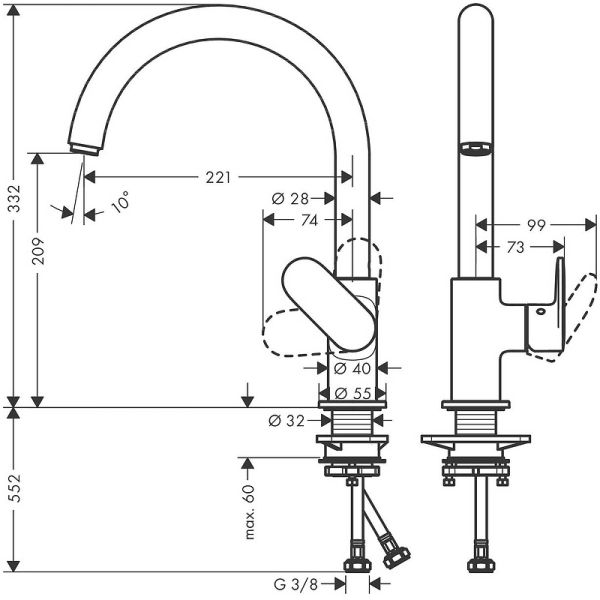 Высота смесителя:33.2
