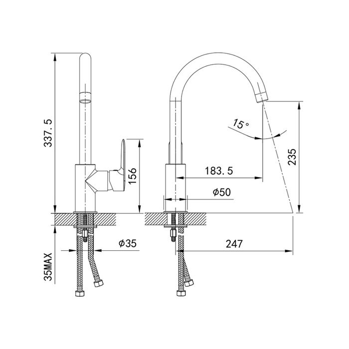Гибкий излив:нет