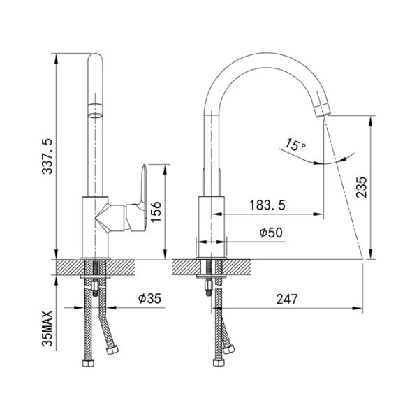 Гибкий излив:нет