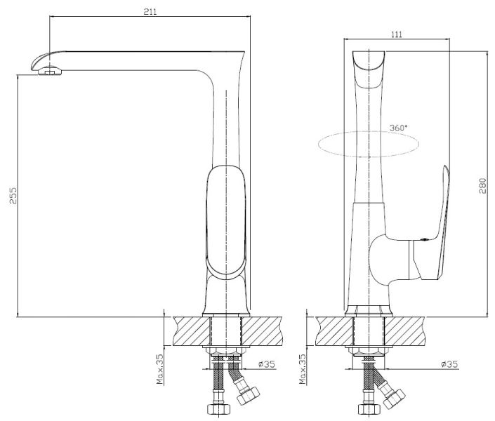 Излив: поворотный 360 радусов, навесной