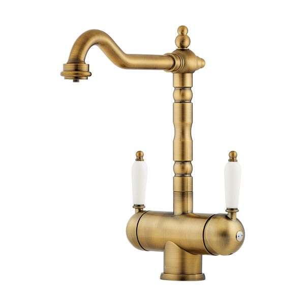 • Классический дизайн и удобство использования, благодаря высокому изливу; • Цвет: 022.Античная Латунь; •Технология PURE LIFE: Подключение фильтра для очистки воды. Фильтрованная вода подается по отдельной трубке и не смешивается с водопроводной водой; • Высококачественная латунь сохранит воду чистой и здоровой; • Аэратор произведен из пластика, благодаря чему на нем никогда не появится известкового налета и ржавчины; • Коробка внутри проложена поролоном, который обеспечит сохранность изделия при транспортировке; • Полный набор креплений, соединительных шлангов, подробная инструкция и гарантийный талон в комплекте;