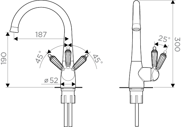 • Ручки смесителя украшены кристаллами Swarovski; • Высококачественная латунь сохранит воду чистой и здоровой; • Аэратор произведен из специального полимерного материала, благодаря чему на нем никогда не появится известкового налета и ржавчины; • Коробка внутри проложена поролоном, который обеспечит сохранность изделия при транспортировке; • Полный набор креплений, соединительных шлангов, подробная инструкция и гарантийный талон в комплекте