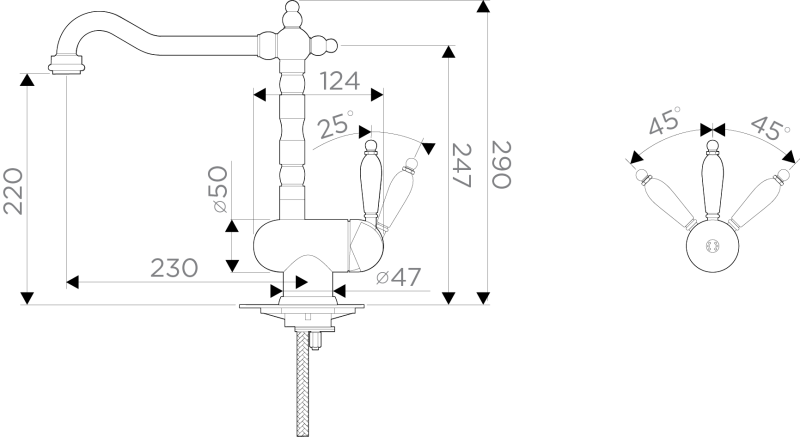 • Классический дизайн и удобство использования, благодаря высокому изливу; • Цвет: 022.Античная Латунь; • Высококачественная латунь сохранит воду чистой и здоровой; • Аэратор произведен из пластика, благодаря чему на нем никогда не появится известкового налета и ржавчины; • Коробка внутри проложена поролоном, который обеспечит сохранность изделия при транспортировке; • Полный набор креплений, соединительных шлангов, подробная инструкция и гарантийный талон в комплекте;