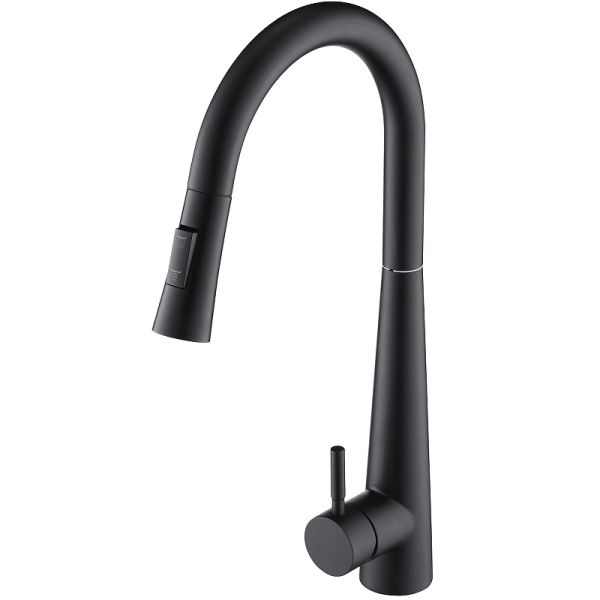 Смеситель Orange Steel для кухонной мойки, с вытяжным изливом, цвет черный, M99-007bОднозахватный смеситель для кухни с поворотным изливом и вытяжным душем Orange Steel украсит современный интерьер. Благодаря фирменному картриджу Orange управление напором и температурой воды легкое и плавное. Корпус выполнен из высококачественной латуни, не подверженной коррозии от длительного контакта с водой. Износостойкое покрытие в цвете матовый черный нанесено методом порошковой окраски с многоступенчатой системой подготовки и температурной обработкой. Особенностью данной модели является наличие вытяжного излива (650 мм), что упростит мытье посуды и гигиеническую уборку мойки - 2 режима струи.Комплектация: смеситель, набор креплений, гибкая подводка, инструкция