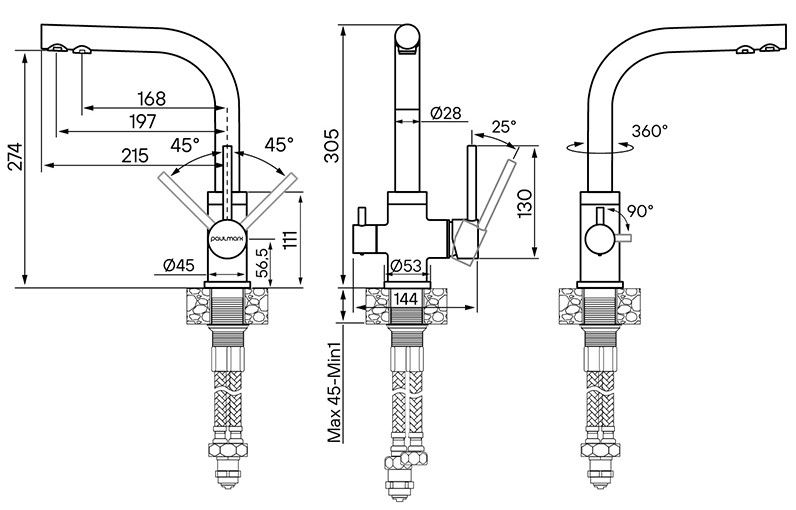 Высота смесителя:30.5