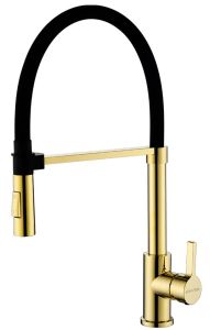 Смеситель для кухни, с гибким изливом, артикул Ha214021-GИзготовлен из высококачественной латуни, которая отвечает высочайшим европейским стандартам качества, не содержит свинца, не разрушается со временем и безопасна для здоровья.