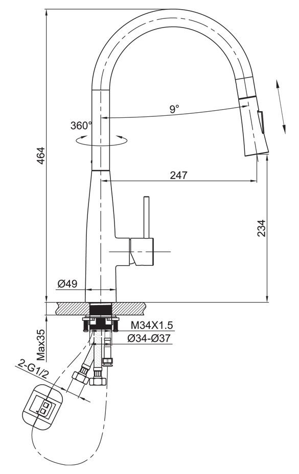 шланг 150см, распылительная головка, покрытие матовый черный 3 слоя( специальная технология)