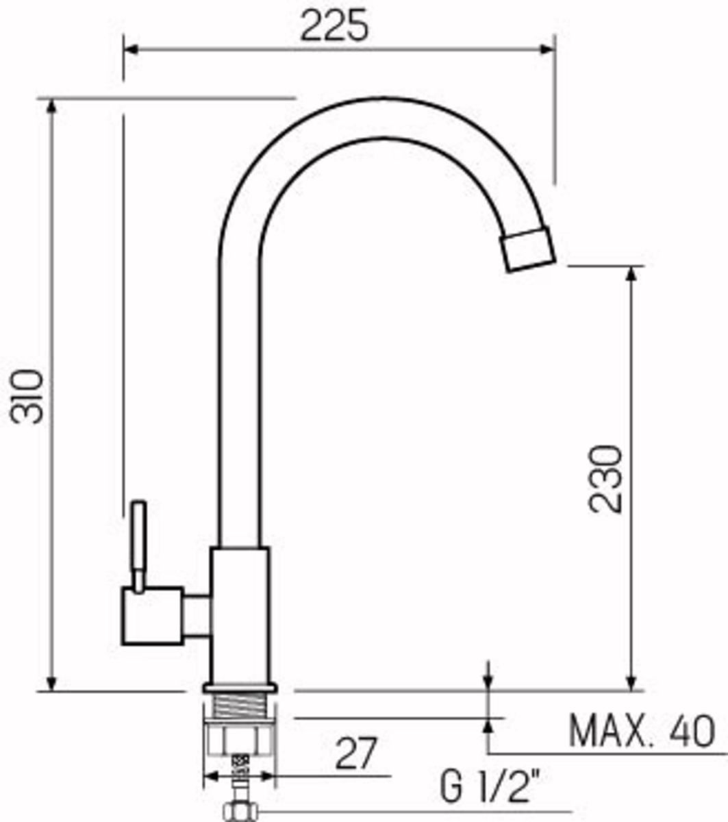 Смеситель для кухни для одной воды с высоким поворотным изливом