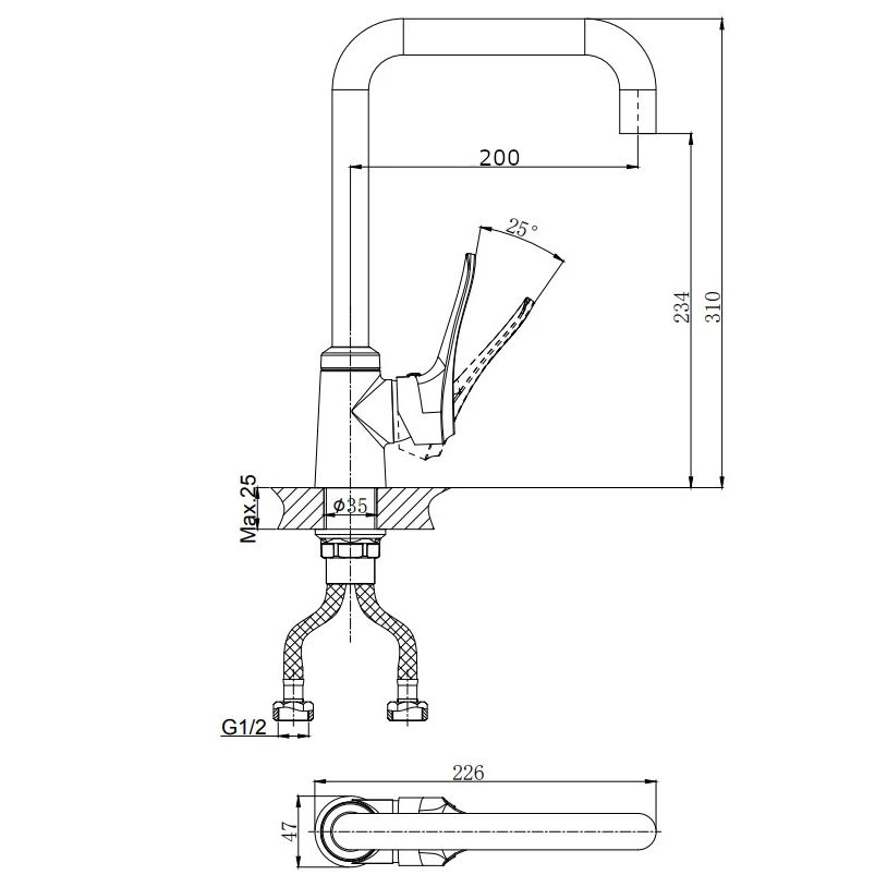 - Высота смесителя:31