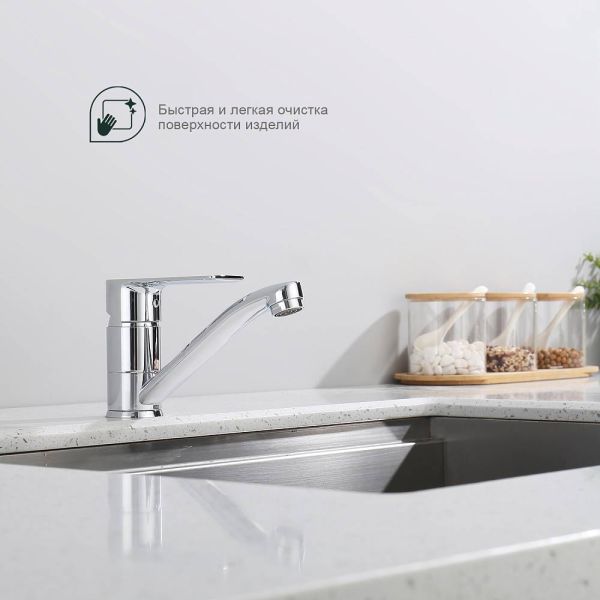 Смеситель для кухни Splenka S05.45. Цвет: хром. Гибкая подводка 50 см идет в комплекте. Благодаря грамотно разработанной конструкции, прибор отлично справляется с регулированием температуры и напора потоков воды. Однорычажные смесители максимально удобны при эксплуатации, всего одним движением руки можно закрыть или открыть воду, имеют стильный внешний вид, а также комфортность в использовании. Гарантия 5 лет.