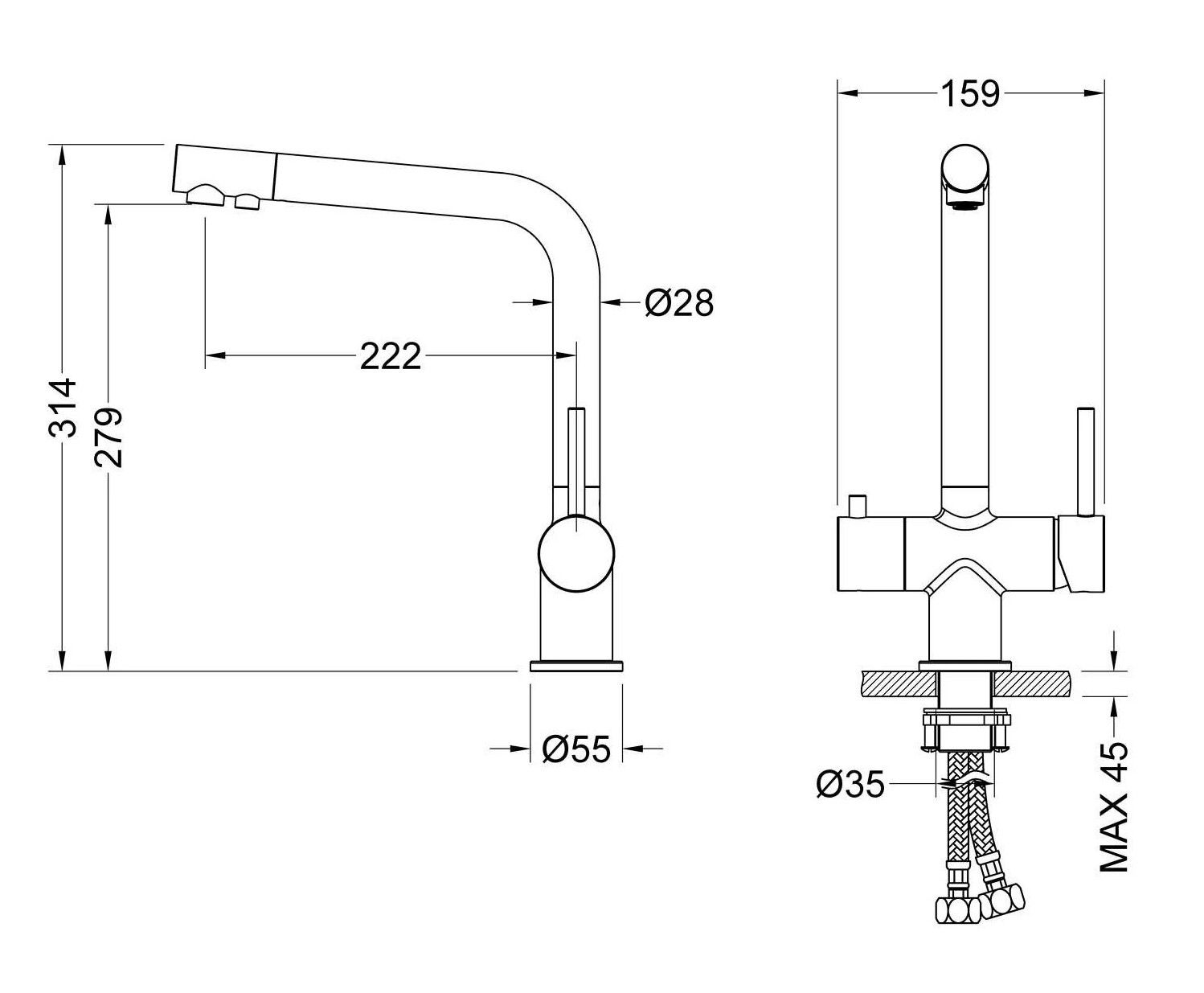 Черная сантехника становится все более популярной из-за способности расставлять акценты. Смеситель Timo Saona 2396 с системой подключения фильтрованной воды относится к премиальному сегменту, предназначен для монтажа на кухонную мойку или столешницу. Высокий излив подходит для моек с двумя чашами, а также позволяет справляться с мытьем габаритной посуды. Удобное (вертикальное) расположение рычага смесителя в крайнем положении "холодный старт", позволяет не задевать ручкой за стеновые панели, фартук, предметы, которые находятся за смесителем. Картридж с функцией "холодный старт" работает в диапозоне 90 градусов, рычаг установленный в исходное положение (вертикально) при открытии подает только холодную воду, а не 50% холодной воды плюс 50% горячей, позволяя экономить до 30% расход горячей воды. В нижней части смесителя установлены 2 трубки с адаптером (можно подключиться к любой из них) для соединения с трубкой фильтра. Подача фильтрованной воды осуществляется поворотом ручки дивертора, расположенной слева на корпусе смесителя (от себя или на себя) в зависимости от того какую из трубок вы выбрали для подключения с трубкой фильтра. Вставьте заглушку (входит в комплект) до упора в свободную трубку. Положение 12-00 дивертор выключен. Сложностей монтажа не возникает при установке смесителя опытным сантехником. Внимательно изучите инструкцию по монтажу и эксплуатации. Черная сантехника требует бережного ухода.
