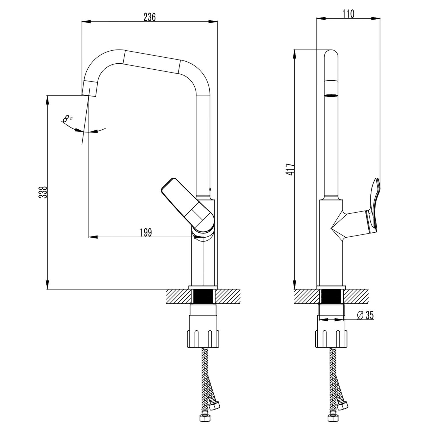 Гибкий излив:нет
