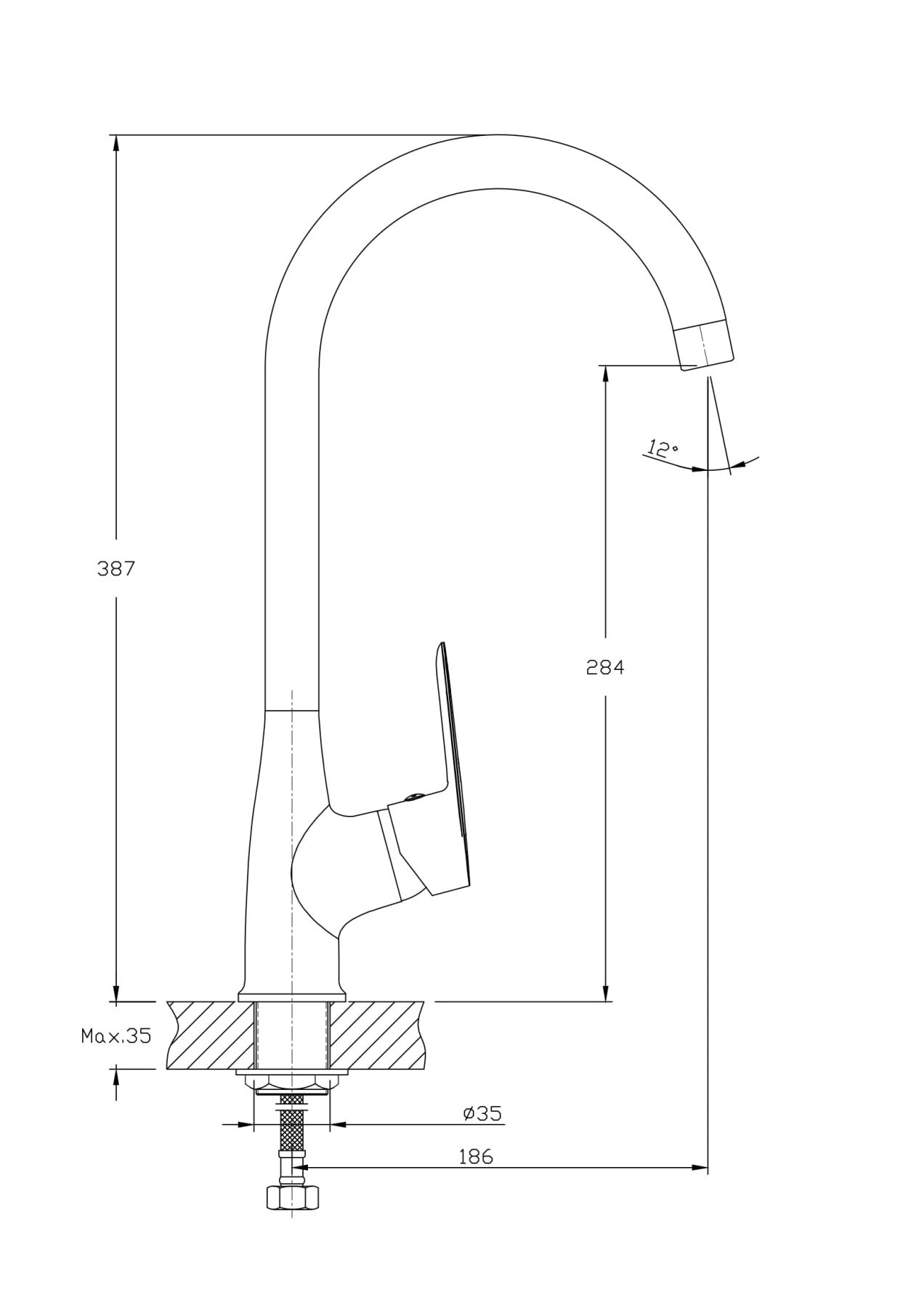 Смеситель для кухни с поворотным изливом RUSH Edge арт. ED7735-22 с металлической ручкой и имеет рычажное управление. В смеситель установлен картридж D-35 (RSH102) с керамическими пластинами. Высота смесителя 387 мм. Излив поворотный 360гр, 186 мм. Высота излива до аэратора 284 мм. Аэратор изготовлен из пластика с нержавеющим корпусом, угол наклона аэратора -12 гр. В комплекте гибкая подводка с латунными гайками 35см - 2 шт, присоединительная гайка S-32(34)мм., втулка-31мм, фум-лента, индивидуальный пакет, паспорт, гарантийный талон.